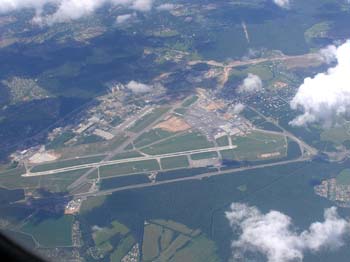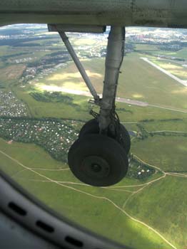 The constant droning of the twin props and the gentle swaying sent many of the group to sleep after our surprisingly good snack meal, but all awoke as we passed high over Moscow city centre and joined overhead the field on our long downwind approach to Vnukovo, providing some excellent views of all the parked aircaft.