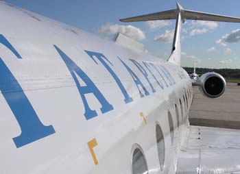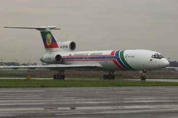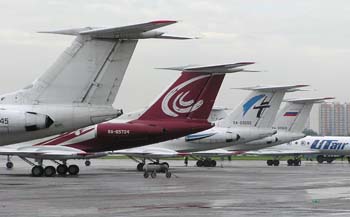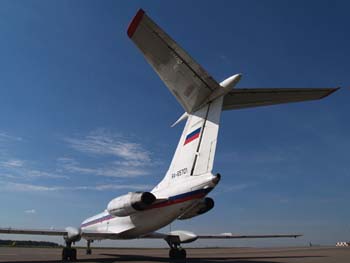 Sunday morning brought our eagerly awaited ramp tour of Vnukovo - unfortunately Sodski's Law came into play and it rained for most of the tour, but a few minutes of brightness towards the end, plus the fantastic aircraft with hardly a Western type in sight, made it well worthwhile.
