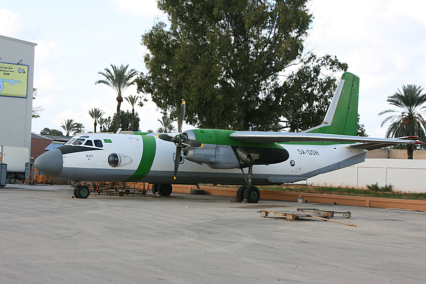 The day commences with rain, a real dampener on the proceedings, but at this time of year, the weather is very unpredictable and changeable. Time this morning is limited due to a scheduled business meeting and on return circa 13.00 hours, the clouds have vanished to be replaced by glorious blue skies. By this time, it is now impossible to photograph any of the exhibits as the packed crowds swarm in and out and around each aircraft which is open for inspection. A very nice touch indeed.! Away from the show, there are several other interesting aircraft and it seems somewhat prudent to investigate and risk challenge, but very mush, nothing ventured, nothing gained! It soon becomes apparent that is a real open day, the public can venture just anywhere without question, even somewhat is obviously western. So the chance for close investigation of Libyan Air Ambulance Mil-8s, BAC-11, Libyan Arab Airlines Falcon, LAAF AN-72 and Yak-40 and Air Libya-VIP Yak-40 just too good too miss! No fences, no challenge, just smiles and waves, oh heaven. The only slight observation on appearance was from some French mechanics working on the 2 Rafaels who obviously could identify a westerner! All the locals were in the cockpit but “Terminez, terminez” was the greeting The Bac-111 5A-DKO was delivered to Libavia from Bucharest Otopeni to Tripoli Mitiga on the 12 October 2006. Now quite a rarity, and sadly in white, one of few to survive the EU dictate of April 2002. Further walking too place. By the VIP Terminal, there is a gathering of top brass with big flat hats in abundance. No worries, keep going. At the next building, the walk is halted as a request on destination is made in good English. There are 2 LAAF B707s away to the right, I am instructed to halt, temporarily as A VIP is arriving and the I may continue. The VIP-it’s Al-Saadi Gaddafi again on a LAA Falcon 70, but photography here at this moment is censored. Please continue, I am advised. Another few hundred yards and here are two parallel giant runways, and the 5 aircraft in question 2 x B707, 2 x727 of Bouraq Airlines and “that” infamous VIP green + white IL-62 5A-DKT , are visible. Crossing the first runway, the prudence of crossing a second questionable, because even though the airport is closed for the show, the prospect of a night in jail not really so appetising. Turning to retrace the steps and there unseen before is a long rusty gate behind which are 3 glorious Antonovs. This is the home of “003 Aircraft overhauling, Repair and Maintenance Centre 2006”. Swiftly circumnavigating the gate, it is obvious that no-one is about , it is a delight no only to discover 5A-BOG AN-24 of Sin Saad Airlines-very rare, only seen an AN-74 of the airline, 5 years ago but two quasi-military civil AN-26s-5A-DON/8304 and 5A-DOH/8315-what a fantastic trio and what a discovery. Away to the back is an abandoned Libyan Arab Airlines AN-24 but with time running out, there was no time to investigate ite identity.