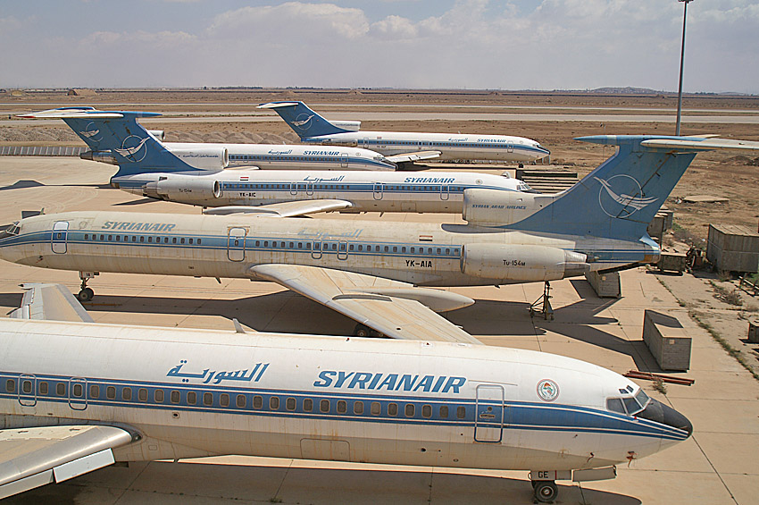 - the arrival at Damascus involved a visual circuit of the airport just in case we had missed anything on the earlier visits and of particular note was an Iraqi Airways Boeing 727 now parked in front of the Syrian Air maintenance base.