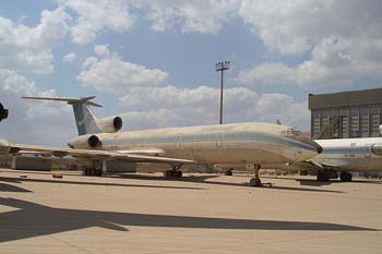 First thing the following morning it was back to Damascus Airport for a ramp tour - inevitably with this sort of visit this was proceeded by a long wait but eventually we were escorted to the Syrian Air maintenance base where two of their Tupolev 154's (YK-AIA/YK-AIC) are stored together with three Boeing 727's (YK-AGC/YK-AGE/YK-AGF) all of which looked if they had not flown recently.