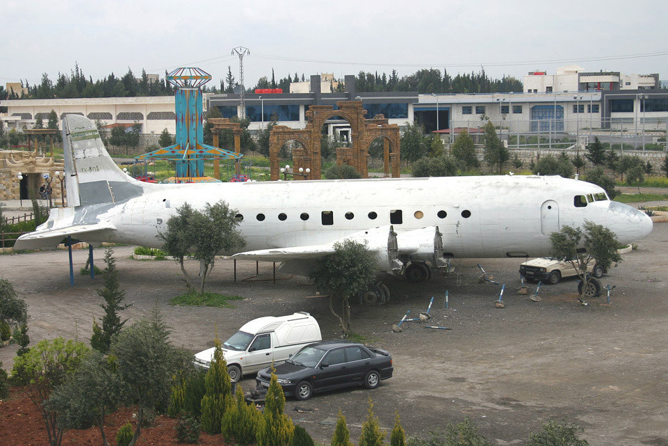 Sitting in the middle of the "Magic World" amusement park in the suburbs of Aleppo - and clearly visible from the main highway to Damascus - is former Syrian Arab Airlines Douglas C-54 YK-ADA